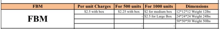 1. *FBM Charges:* FBM charges apply only for products shipped in small, medium, or flyer boxes. For products shipped in large or extra-large boxes, box charges will be calculated separately as per the material cost.